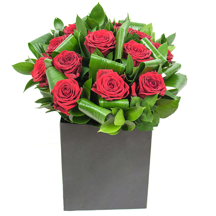 Celebrate timeless romance with the INFINITE BEAUTY bouquet from Florist Rotherhithe. This elegant hand-tied arrangement features luxurious red roses styled with glossy aspidistra leaves and lush ruscus for a simple yet striking design. Perfect for anniversaries, Valentine's Day or any romantic gesture, this premium red rose bouquet brings instant style and sophistication to any home or office space.